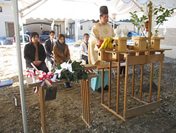 担当の前田さんとは何度も打合せをさせていただき、図面決定までに時間がかかってしまいお手数をおかけしました。少し寒かったですが、滞り無く地鎮祭を執り行うことができて良かったです。事故や怪我の無いよう、無事に予定通りの家を完成させて欲しいです。
