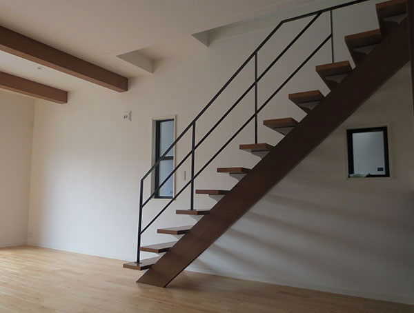 A:パントリー、シューズクローク、ストリップ階段、ガルバリウムの外壁材