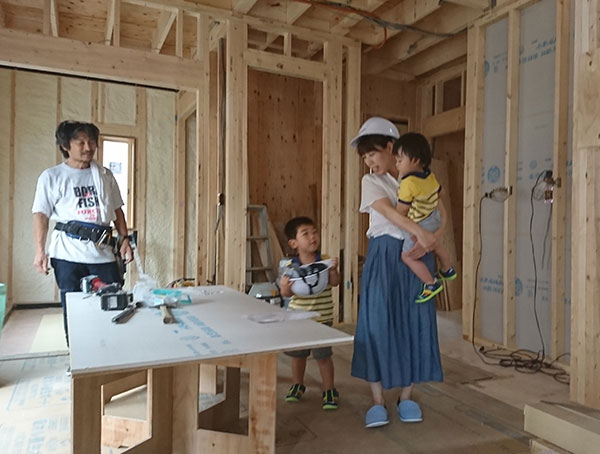 7月9日(日)、3回目の現場案内をしてもらいました。先程まで大雨が降っていたのに、現地に着いたのと同時に雨がおさまりグッドタイミング!!担当営業の方が、既に待機してくださってて、一緒に建物へ入り、工事の進み具合の説明を聞きました。昨日、断熱材のウレタン吹き付けがされたばかりということで、しっかりと処理がされているかどうか見て回りました。いたるところをチェックして、気になる箇所をスマホで写真に撮り、本日も作業中の大工さんに尋ねると、愛想よく説明してくださって、納得して安心しました。次第に仕上がっている我が家に楽しみがいっぱいです。次の現場案内は大工工事が終わった頃とのことです。仕様の打ち合わせはほとんど終わっていて、クロスなどを選んでいるところです。早く新しい我が家に入居したいです。