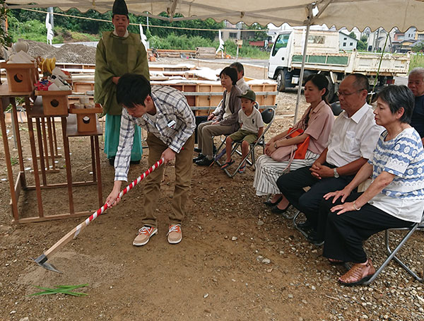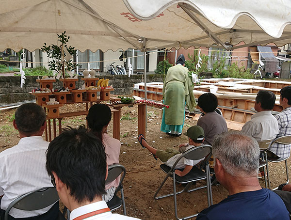 朝から降っていた雨も止み、穏やかな天気の中、地鎮祭を執り行っていただきました。お盆休み中ということもあり、家族総出で参加いたしました。これから思い描いていた我が家が形になっていくと思うと本当に楽しみです。次回は基礎工事を案内していただく予定です。それと並行して、細かい家の中の仕様を決めていくということなので、じっくりと家族で検討していきたいと思います。