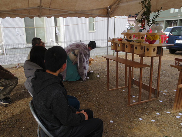 本日は、野市町西野K様邸の地鎮祭を執り行いました。お天気も良く、これからK様のステキなお家を建築する為の、地鎮祭並びに工事安全祈願祭は、滞りなく執り行えました。ご両家のご家族様もご出席して頂き、地鎮祭後も皆様でこれから建つK様のマイホームを想像しながら、皆様で楽しそうにお話しされておりました。そんな素敵なご家族様の為にも、これからK様のステキなマイホームを頑張って建築させて頂きます。次回は着工後にご案内させて頂くご予定ですので、その時にはお家の配置が見えてきますので、ますますこれからのマイホーム構想が膨らむかと思われますので、今から次回ご案内が楽しみです。