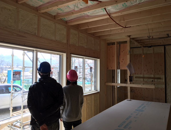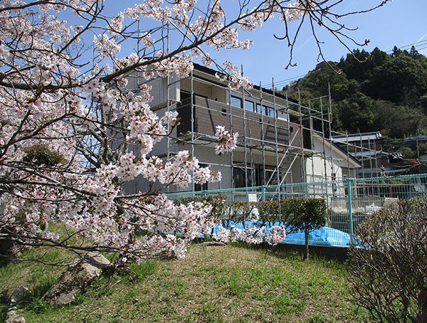 本日は、朝倉にて建築中のH様邸の現場案内をさせて頂きました。前回のご案内時には、まだ施工されてなかった外壁をご覧になられたお施主様は早速写真を撮ったりと、ゆっくりご覧いただけました。建物内部は吹付の断熱材アクアフォームが施工されており、建物に入るなり「なんか外より全然涼しいねぇ」と少し日中の気温が高かったこの日早速マイホームの断熱性能を体感して頂けました。(後日の気密測定の結果、C値=0.231でした。)その後リビングより桜が見れることに気づいたお施主様は、満開に咲いた桜をご夫婦で眺めておりました。来年からはご自宅にてお花見が出来るので、今から楽しみですね。