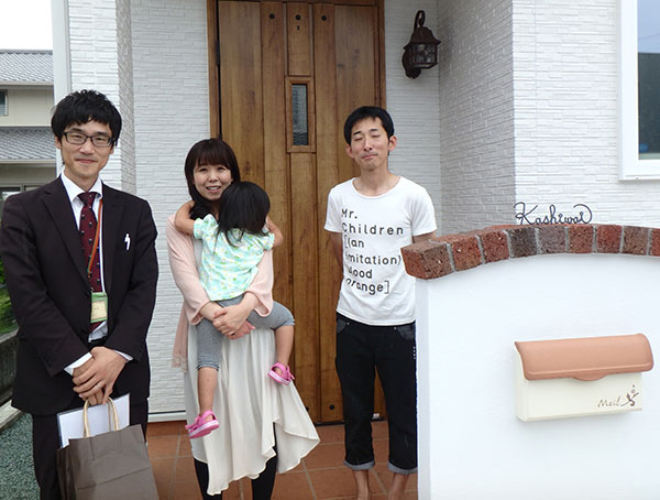 平安アーキテクトで家を建てることにした決め手は、営業の都築さんの人柄でした。すべてが納得出来る土地をなかなか見つけられず、土地選びに頭を悩ませましたが、都築さんが全面的に協力してくださり、理想の土地にめぐり合うことができました。都築さんは無理のない資金計画を提案してくださって、この営業さんなら信頼出来ると思いました。すべてに誠実に対応してくださり、一緒におうち作りを楽しんでくださっているのが伝わってきて嬉しかったです。プレイベートなこともたくさんお話ができ、信頼出来るお兄ちゃんのような存在でした。仕様担当の方も事細かく確認することを徹底してくださっていたため、一つも間違いがなく、不快な思いを振ることもなくおうちの完成の日を迎えることができました。現場監督さんも、一つ一つの作業を妥協せずに丁寧に確認・実施をしてくださり、とても信頼していました。できること、できないことをはっきり説明してくださったことで、こちらも納得して受け入れやすかったです。とにかく可愛いお家にしたくて内装にはこだわりました。クロスやフローリングが貼られ、内装が仕上がった我が家を初めて見たときは想像以上の可愛さに感動しました。平安アーキテクトのスタッフの皆様が一緒におうち作りを楽しんでくださったことで、より一層私たちも楽しくなりました!おうち作りにかけた時間は一生の宝物です。平安アーキテクトの皆様には感謝の気持ちでいっぱいです。本当にありがとうございました!!