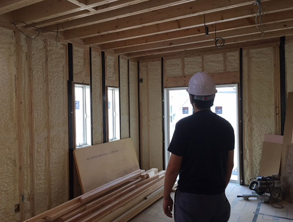 本日は八反町にて建築中のN様邸の現場案内をさせて頂きました。現場はアクアフォーム断熱材を施工後、内壁のボード施工前のご案内と言うことで、まだ仕切り壁が存在しない中でのご案内でしたが、リビングの大きな吹き抜けをご覧いただき、お喜びの声頂けました。また、本日はご主人様お一人でのご見学でしたので、次回は是非とも奥様とお子様とご一緒にステキなマイホームが仕上がっていく様子をゆっくりとご覧頂ければと思います。