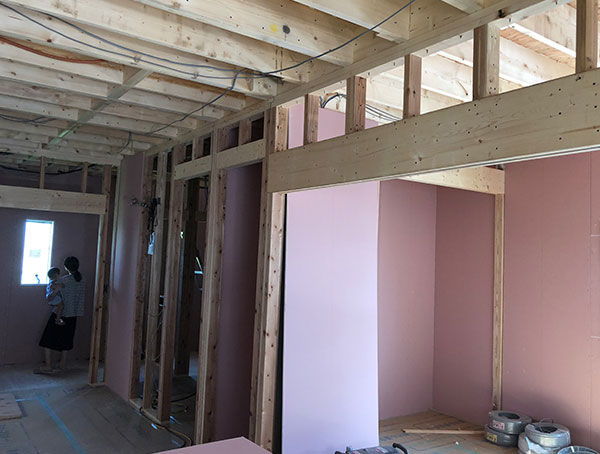 本日は住宅ショールーム『夢プラザ』にて午前中に仕様の打ち合わせを終え、午後は建築中の現場にて、大工さんと担当の首藤さんにご案内をしていただきました。棚やニッチの位置を実際に現場で確認したり、実際にデッキの位置を確認したりと徐々にマイホーム姿が見えてきて実感がわいてきたように思います。今の住まいもこの現場に近いので、これからも時々立ち寄ろうと思います。完成するのが、今からとても楽しみです!