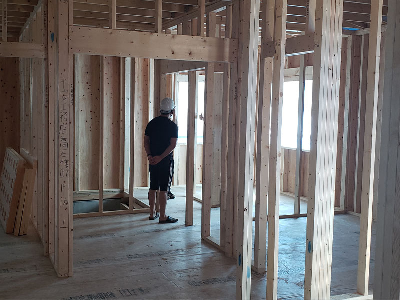 建前後の状態を案内していただきました。間取りでは分かりにくかったLDKの雰囲気が何となくですが掴めました。基礎の状態では小さく感じていた我が家も建前後に見ると大きいなと感じます。これから出来上がっていく我が家が今から楽しみです。次回は現地での配線打ち合わせです。よろしくお願いします。
