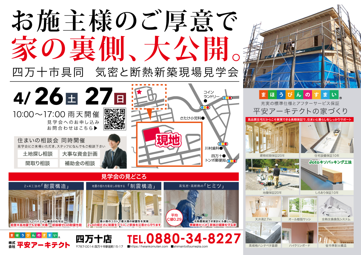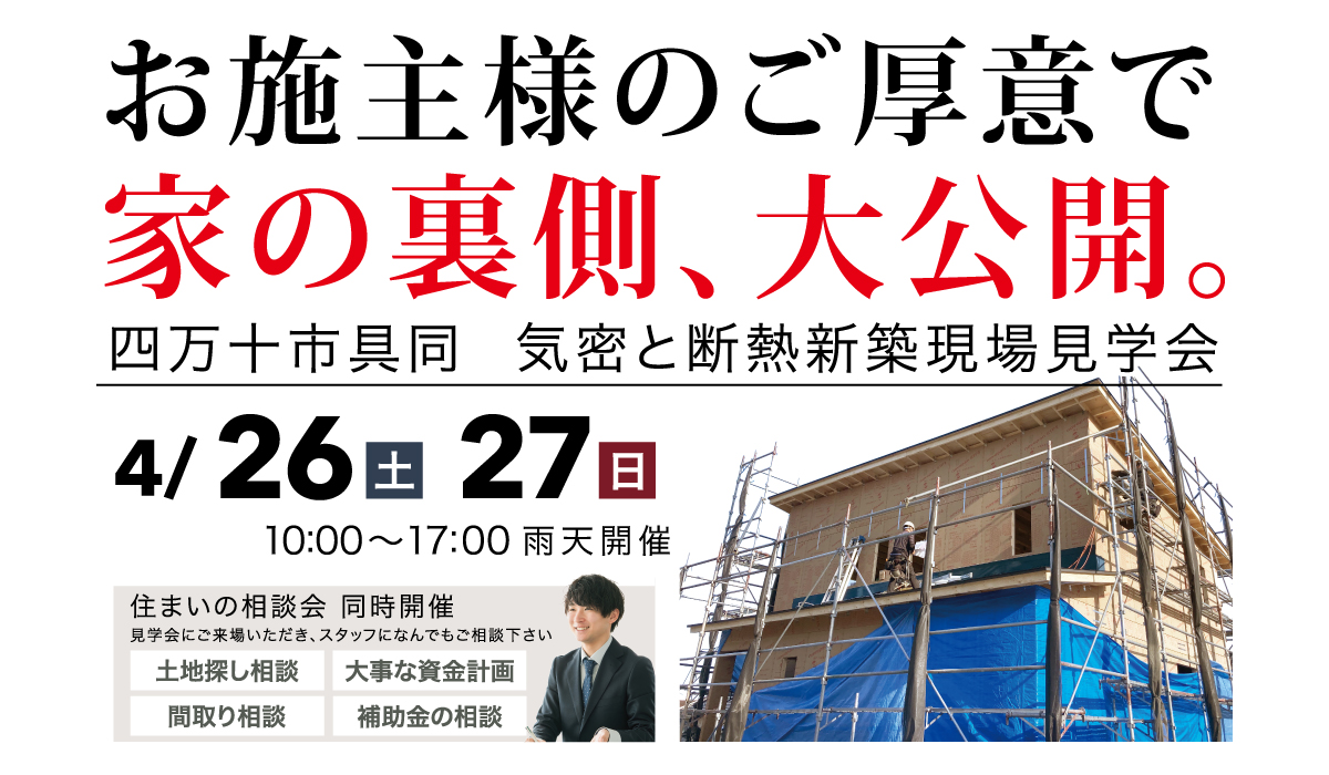 断熱材を施工した直後の状態を見学することができ、高気密、高断熱に必要なポイントを実際に現場で確認していただくことができます。実際の現場で、後から絶対に見えなくなる「家の裏側」を見ていただき、「まほうびんのすまい」の性能が確認しやすい見学会となります。さらに、地震や災害があっても住み続けられる家の構造を実際に自分の目で確かめることで、安心して家づくりを進めることができます。皆さまのお越しを心よりお待ちしております!