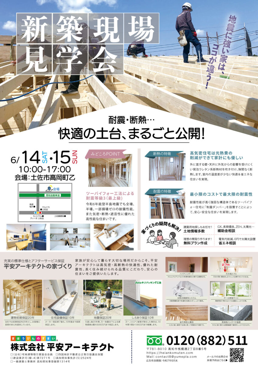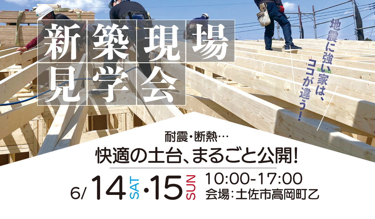 平安アーキテクトでは、6月14日(土)・15日(日) の2日間、土佐市高岡町乙にて【新築現場見学会】を開催いたします!
