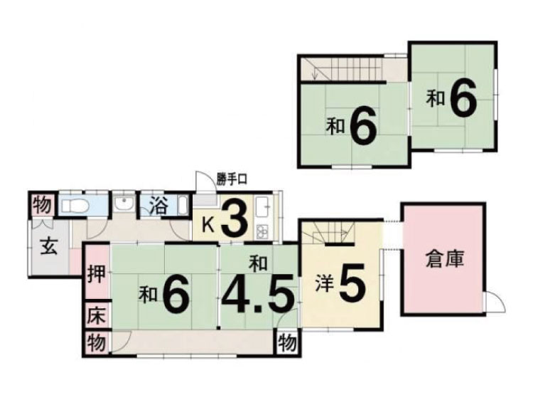- ■間取り/1階:K3・和6・和4.5・洋5