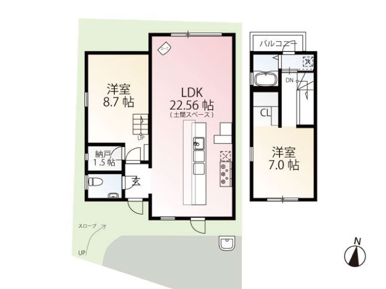 - ■間取り/1階:22.56LDK・洋8.7・S1.5