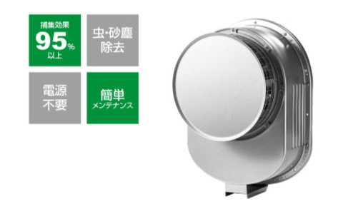 「サイクロン式換気フード」はサイクロン式給気フードで虫・砂塵を除去します。