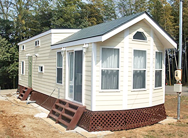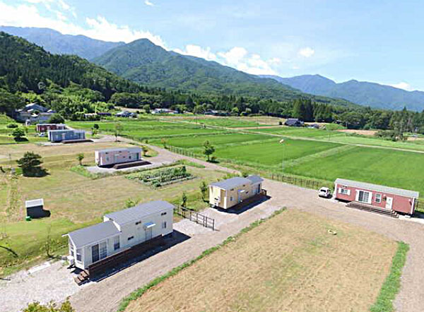 農業体験などを楽しめるトレーラーハウスを利用した宿泊施設。災害時には仮設住宅としても利用。