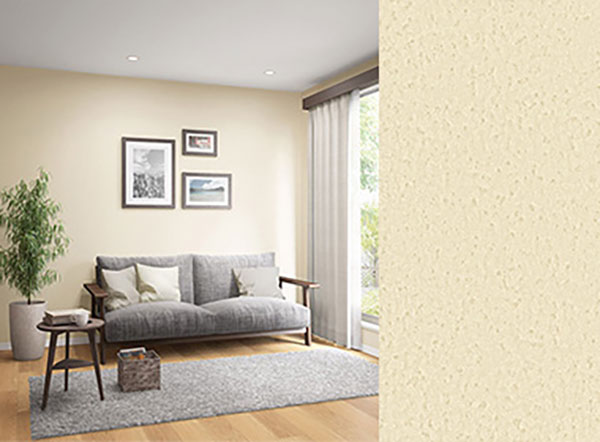 クロス仕上げの内装は腰下部分を濃く、上部から明るい色と中間にトリムをコーディネート。(全種標準装備)