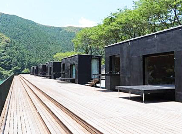新国立球場の設計で有名な隈研吾氏デザインのトレーラーハウスを使った宿泊施設。